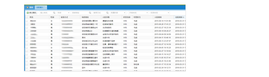 查看详细的出院病人信息,可根据指定的条件,搜索相关的病人,进行随访。