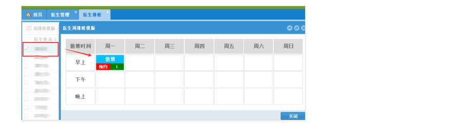 功能用途:方便客服查看医生的排班信息、当前已经预约/可预约人数的情况。