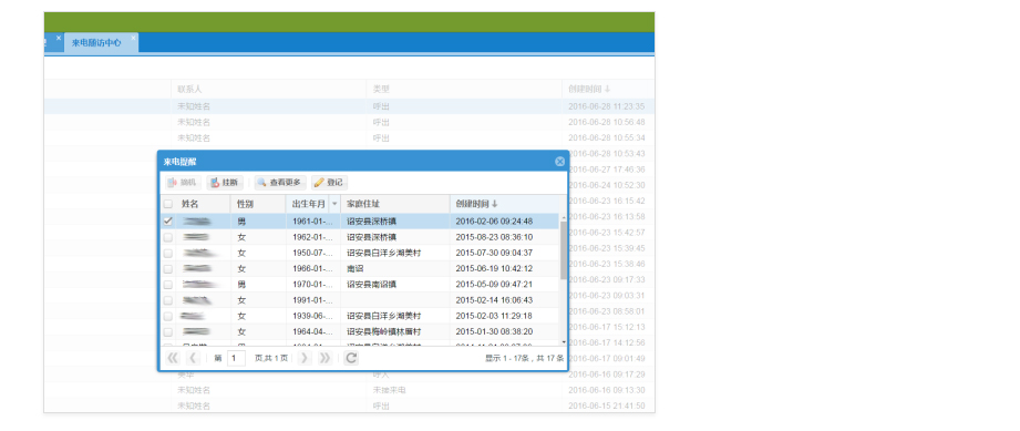 功能简介:提供来电提醒。来电号码匹配患者号码,如存在患者,显示患者基本信息,方便客服为其进行挂号预约。